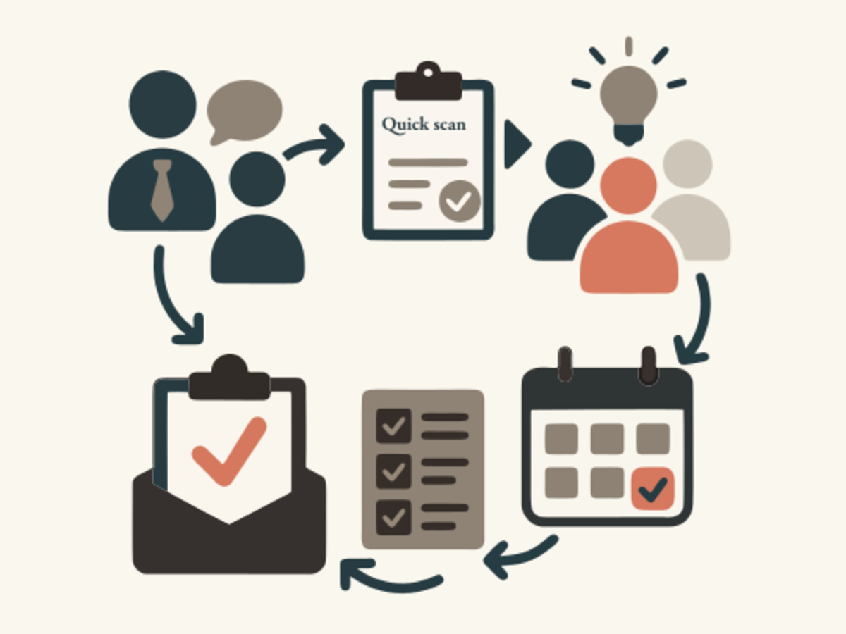 • De samenwerking start met een kennismaking en een Quick scan. Een scherpe analyse van de behoeften en een helder advies over strategie, resultaten en doorlooptijd.